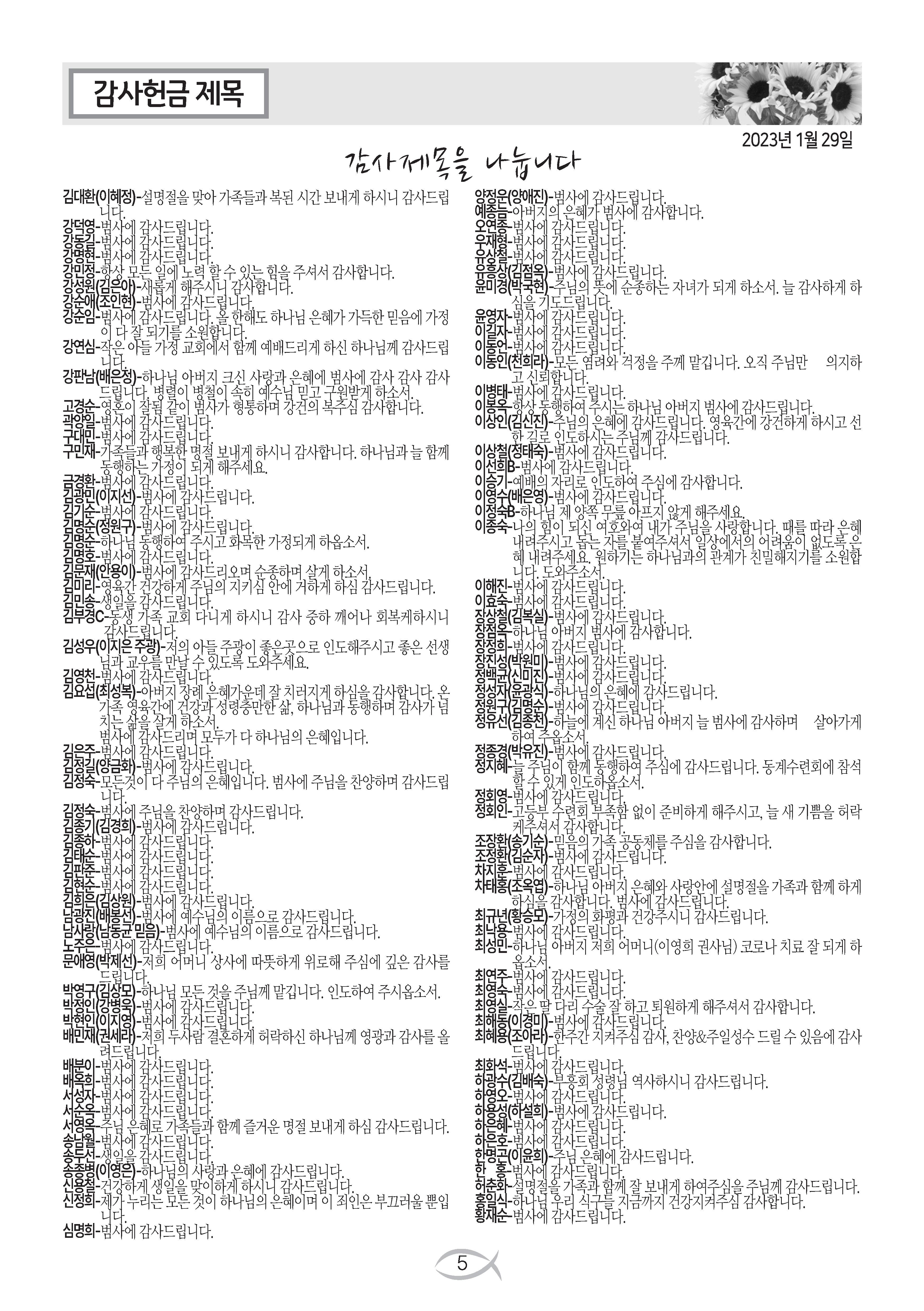 2023-01-29 교회 주보