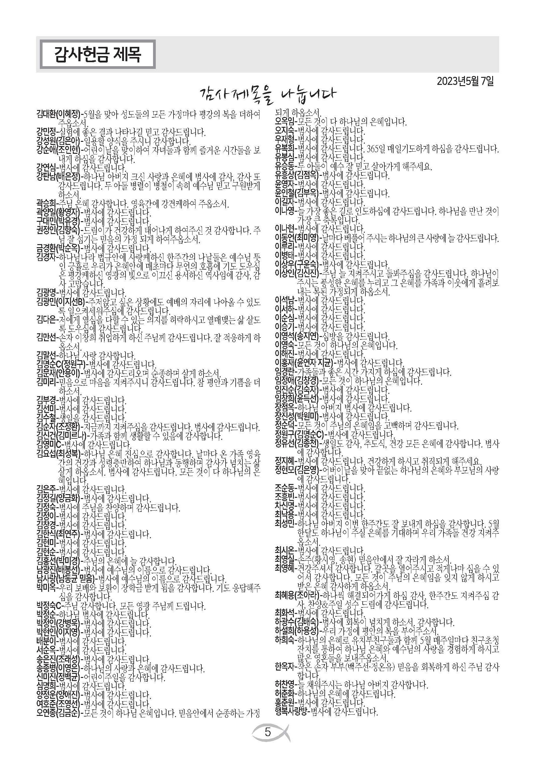 2023-05-07 교회 주보
