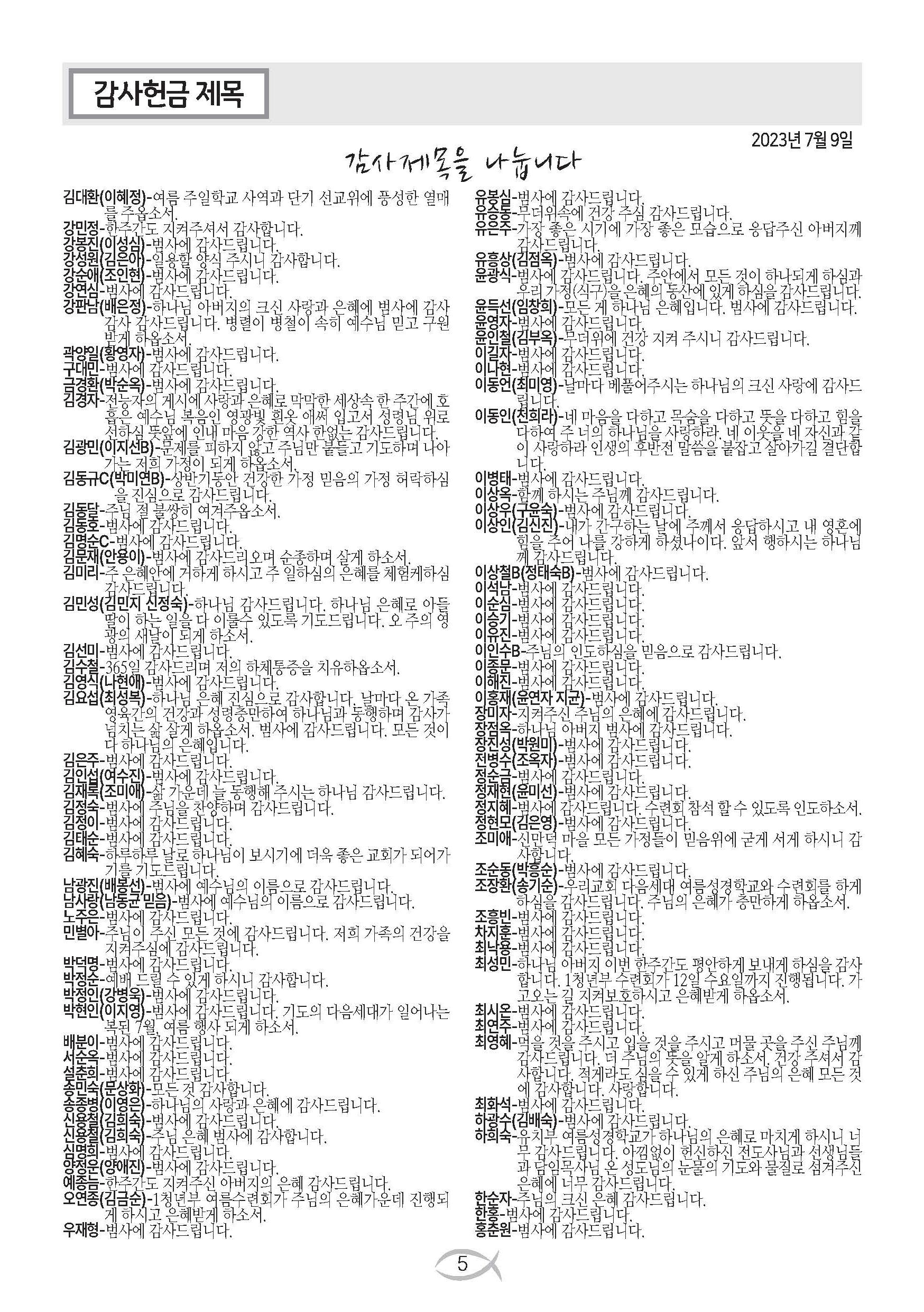 2023-07-09 교회 주보