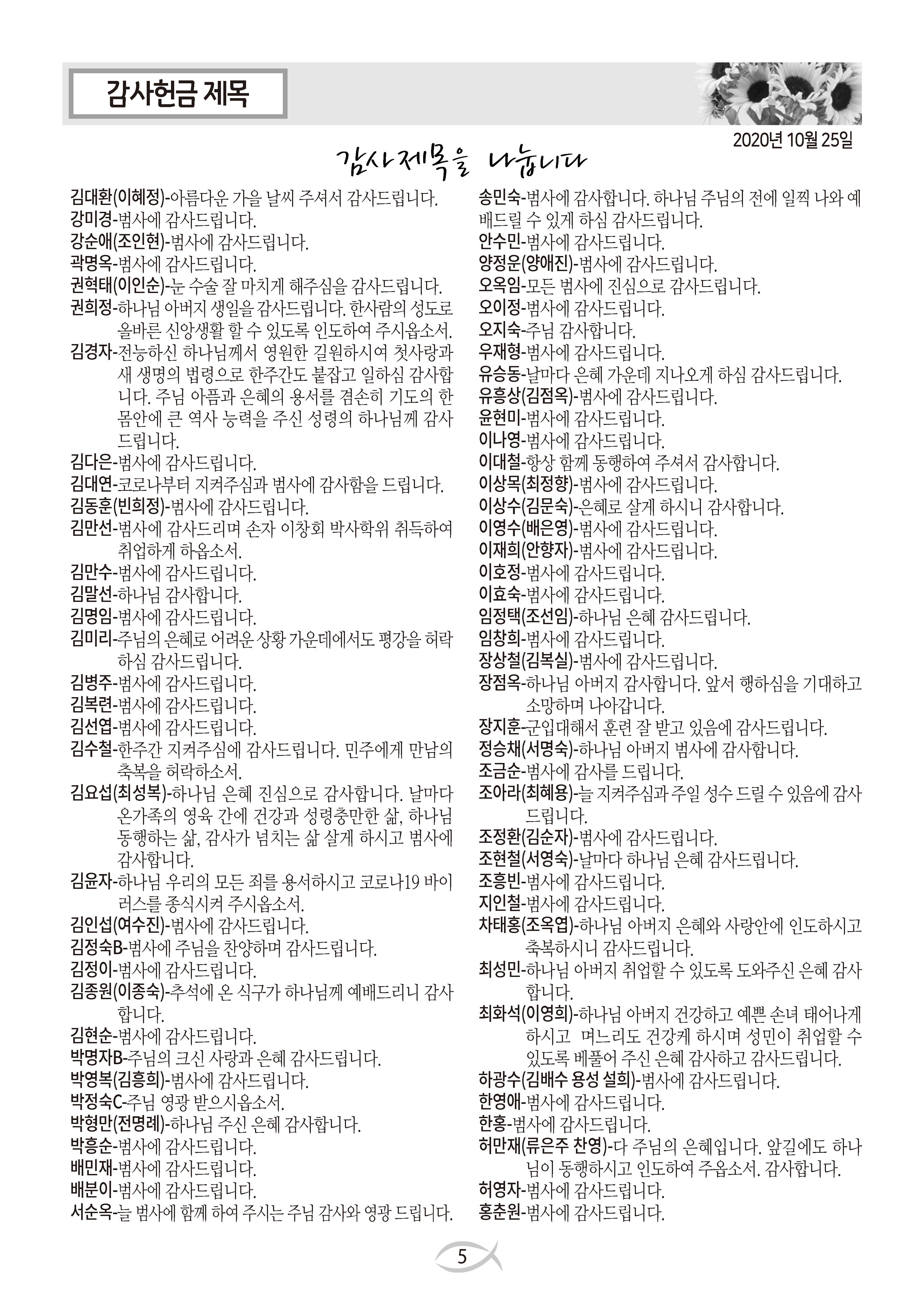 2020-10-25 교회 주보